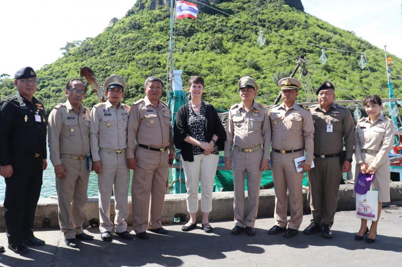 วันที่ 9 พฤษภาคม 2561 เวลา 08.30 น. Mrs. Brenda Smith ผู้ช่วยกรรมาธิการบริหารสำนักงานพาณิชย์ นำคณะจากสถานเอกอัครราชทูตสหรัฐอเมริกาประจำประเทศไทย และผู้แทนจากหน่วยงานศุลกากรและตรวจคนเข้าเมืองสหรัฐอเมริกา รวม 17 คน เดินทางมาจังหวัดประจวบคีรีขันธ์ เพื่อศึกษาความพยายามในการแก้ไขปัญหาการค้ามนุษย์ในภาคประมง ณ ศูนย์ควบคุมการแจ้งเข้า-ออก เรือประมง (PIPO) อ.เมือง จังหวัดประจวบคีรีขันธ์ โดยมีนายพัลลภ สิงหเสนี ผู้ว่าราชการจังหวัดประจวบคีรีขันธ์ให้การต้อนรับ ซึ่งคณะฯ ได้รับฟังบรรยายสรุปข้อมูลการดำเนินงาน และลงพื้นที่ตรวจสภาพการปฏิบัติงานของเจ้าหน้าที่ โดยมีเรือ น.โชคนิชนันต์ 9 แจ้ง Port in (แรงงานเมียนมา 23 คน แรงงานไทย 2 คน) ณ แพป้าฮวย ต.อ่าวน้อย อ.เมือง ซึ่ง Mrs. Brenda Smith และคณะ ได้กล่าวชื่นชมการให้ข้อมูลและการทำงานของเจ้าหน้าที่ ว่ามีประสิทธิภาพ มีการจัดการที่ดี มีความน่าเชื่อถือในระดับสูง ในการนี้นางสาวกรจิรัฏฐ์ พงจันทร์ศธร แรงงานจังหวัด นายธนกร นราวุฒิพันธ์ จัดหางานจังหวัด นางสาวสาคร สนธิเจริญ รกท.สวัสดิการและคุ้มครองแรงงานจังหวัด ร่วมให้การต้อนรับด้วย
