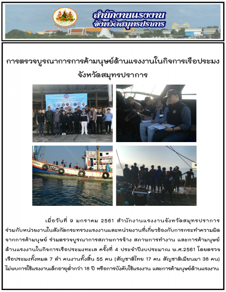 การตรวจบูรณาการการค้ามนุษย์ด้านแรงงานในกิจการเรือประมงจังหวัดสมุทรปราการ