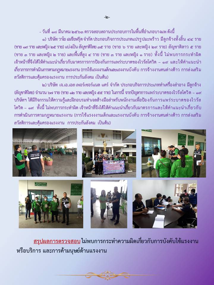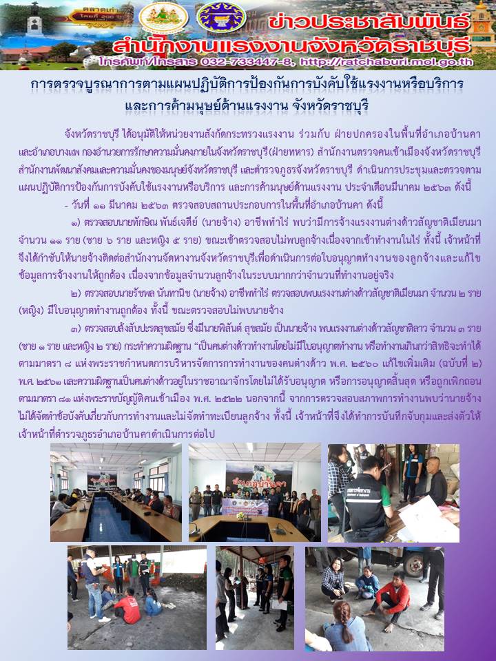 การตรวจบูรณาการตามแผนปฏิบัติการป้องกันการบังคับใช้แรงงานหรือบริการและการค้ามนุษย์ด้านแรงงาน จังหวัดราชบุรี ประจำเดือน มีนาคม ๒๕๖๓