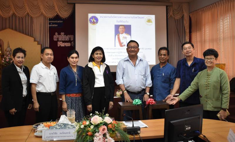 โดย นางปราณี ชลารักษ์ แรงงานจังหวัดแพร่ พร้อมด้วยหัวหน้าส่วนราชการ ข้าราชการและเจ้าหน้าที่สังกัดกระทรวงแรงงานจังหวัดแพร่ ร่วมให้การต้อนรับ