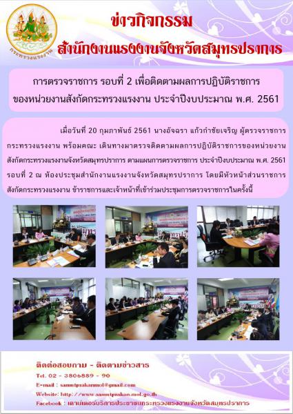 การตรวจราชการ รอบที่ 2 เพื่อติดตามผลการปฏิบัติราชการของหน่วยงานสังกัดกระทรวงแรงงาน ประจำปีงบประมาณ พ.ศ. 2561