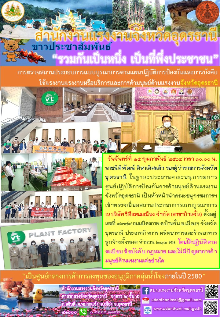 แรงงานจังหวัดอุดรธานี การตรวจสถานประกอบการแบบบูรณาการตามแผนปฏิบัติการป้องกันและการบังคับใช้แรงงานแรงงานหรือบริการและการค้ามนุษย์ด้านแรงงานจังหวัดอุดรธานี