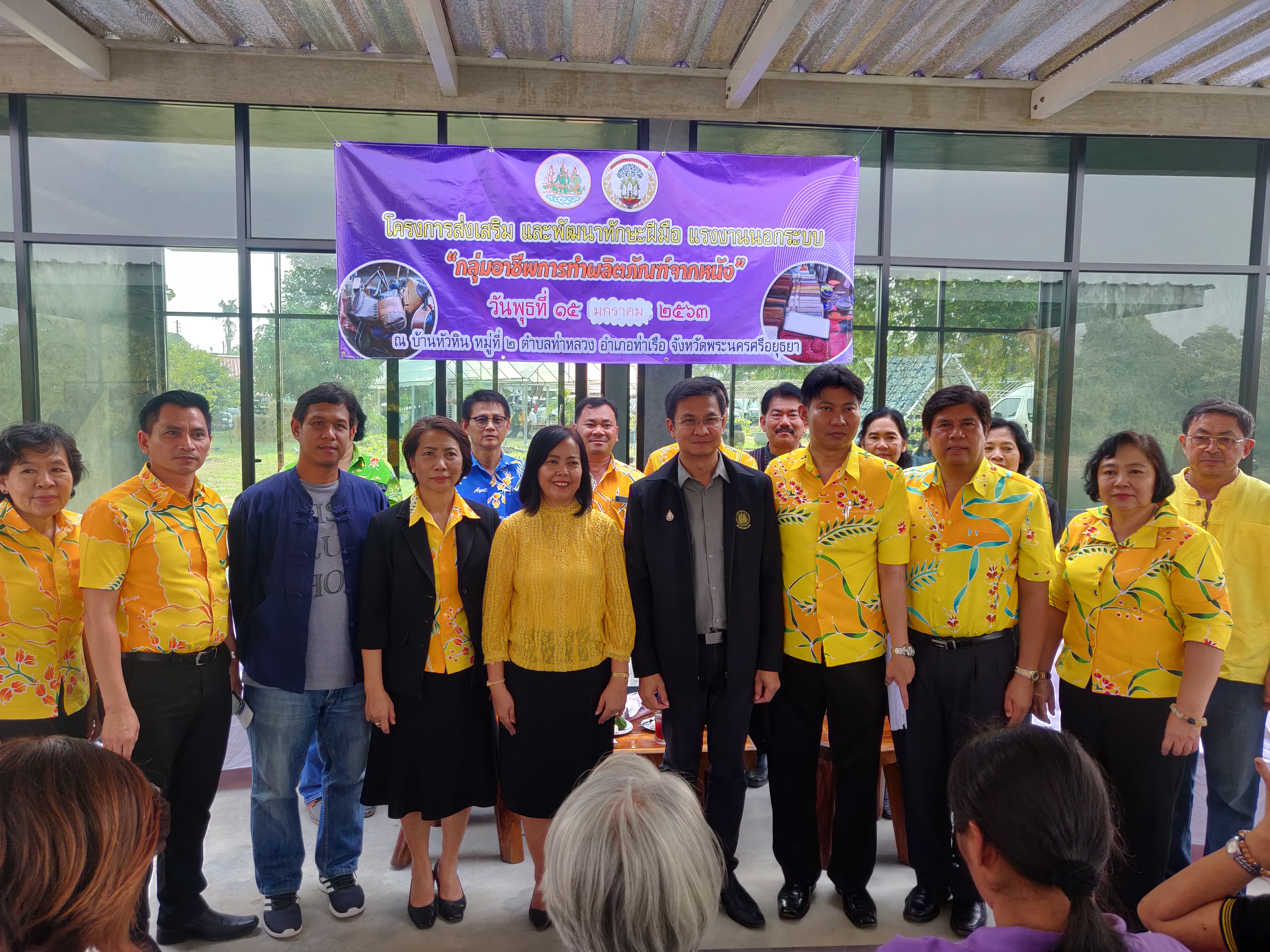 หน่วยงานในสังกัดกระทรวงแรงงานได้ลงพื้นที่ส่งเสริมกลุ่มแรงงานนอกระบบเพื่อเสริมสร้างและพัฒนาทักษะฝีมือแรงงาน สร้างความเข้มแข็งให้กับกลุ่มอาชีพการทำผลิตภัณฑ์จากหนัง ณ บ้านหัวหิน หมู่ที่ ๒ ตำบลท่าหลวง อำเภอท่าเรือ จังหวัดพระนครศรีอยุธยา ได้แก่ การขอรับการสนับสนุนงบประมาณ ในปี พ.ศ.๒๕๖๓ จากกระทรวงแรงงาน การส่งเสริมกลุ่มรับงานไปทำที่บ้าน การส่งเสริมการมีงานทำให้กับผู้สูงอายุ การจดทะเบียนรับงานไปทำที่บ้าน และการแนะนำกิจกรรมเพิ่มอาชีพ เพิ่มรายได้ให้กับกลุ่มแรงงานนอกระบบ การให้ความรู้ตาม พ.ร.บ.คุ้มครองผู้รับงานไปทำที่บ้าน พ.ศ. 2553 และความปลอดภัยในการทำงาน การประชาสัมพันธ์การรับสมัครผู้ประกันตนตามมาตรา ๔๐ และสิทธิประโยชน์ต่าง ๆ การแนะนำ แนวทางการส่งเสริมการเพิ่มผลิตภาพแรงงาน และการให้ความรู้เรื่องความปลอดภัยในการทำงาน รวมทั้งอุปกรณ์ เครื่องมือและสารเคมีที่ใช้ในการทำผลิตภัณฑ์และรู้หลักในการใช้เครื่องมือการจัดเก็บสารเคมีให้ถูกต้อง