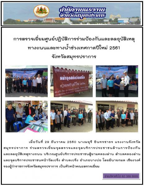 การตรวจเยี่ยมศูนย์ปฏิบัติการร่วมป้องกันและลดอุบัติเหตุทางถนนและทางน้ำช่วงเทศกาลปีใหม่ 2561 จังหวัดสมุทรปราการ