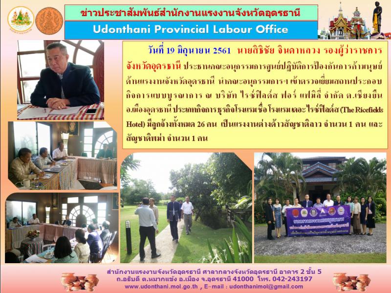 การตรวจเยี่ยมสถานประกอบกิจการแบบบูรณาการ ณ บริษัท ไรซ์ฟิลด์ส ฟอร์ แฟมิลี่ จำกัด ต.เชียงยืน อ.เมือง จ.อุดรธานี