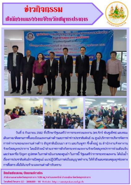 การติดตามการขึ้นทะเบียนแรงงานต่างด้าวของที่ปรึกษารัฐมนตรีว่าการกระทรวงแรงงาน (ดร.จักร์ พันชูเพ็ชร) และคณะ