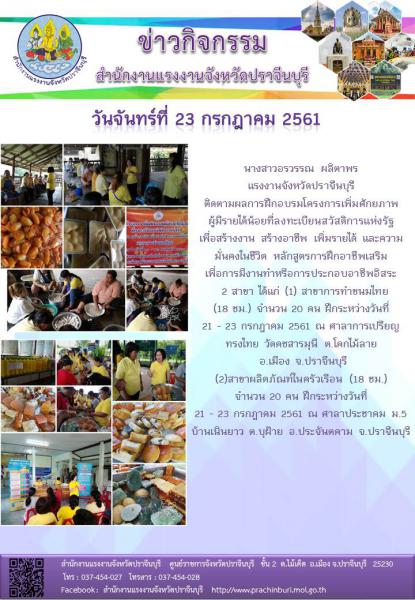 การติดตามผลการฝึกอบรมโครงการเพิ่มศักยภาพผู้มีรายได้น้อยที่ลงทะเบียนสวัสดิการแห่งรัฐเพื่อสร้างงาน สร้างอาชีพ เพิ่มรายได้ และความมั่นคงในชีวิตของจังหวัดปราจีนบุรี