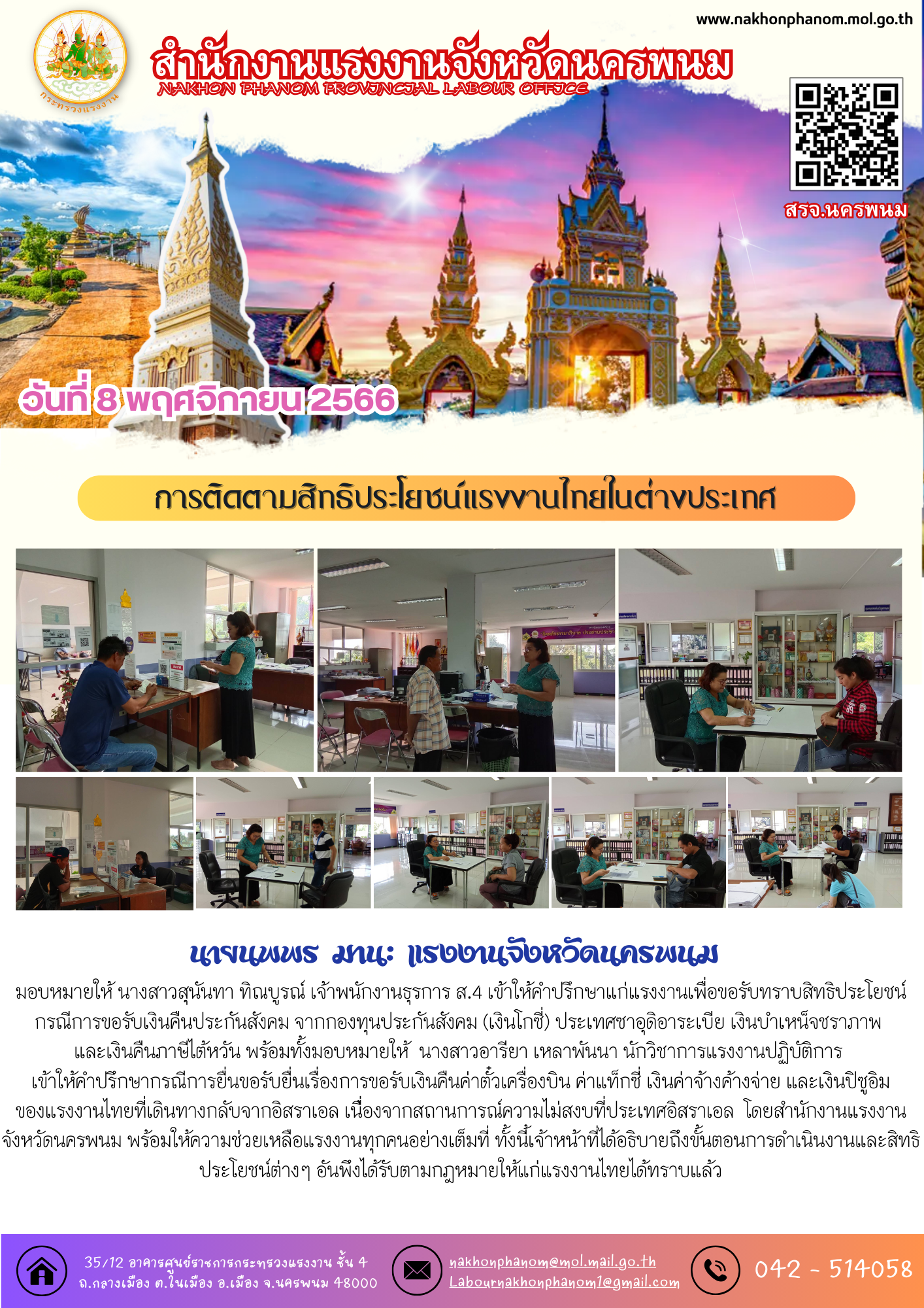 สรจ.นครพนม ติดตามสิทธิประโยช์แรงงานไทยในต่างประเทศ