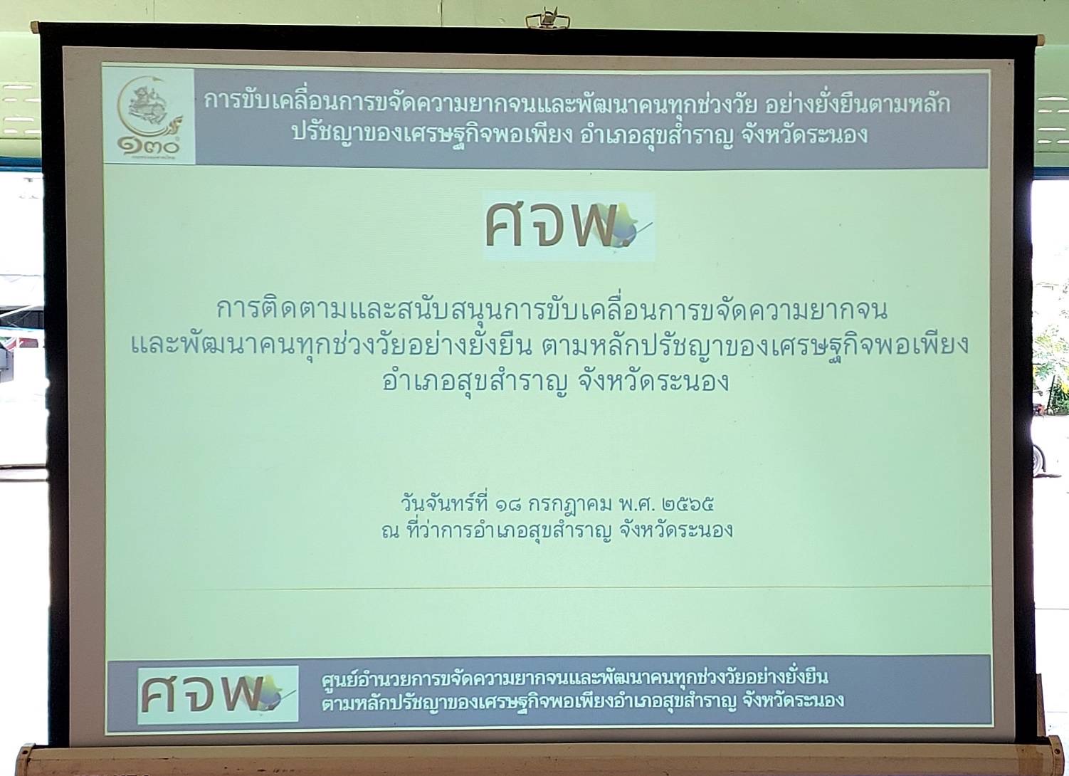 การติดตามและสนับสนุนการดำเนินงานการขับเคลื่อนการขจัดความยากจนและพัฒนาคนทุกช่วงวัยอย่างยั่งยืนตามหลักปรัชญาของเศรษฐกิจพอเพียง
