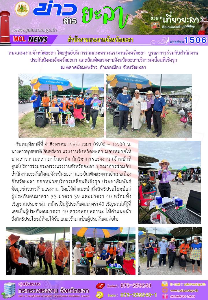 บัณฑิตแรงงานจังหวัดสมุทรสงคราม ประชาสัมพันธ์ภารกิจด้านแรงงาน ประสานหน่วยงานในสังกัดช่วยเหลือคุ้มครองสิทธิประโยชน์ตามกฎหมาย