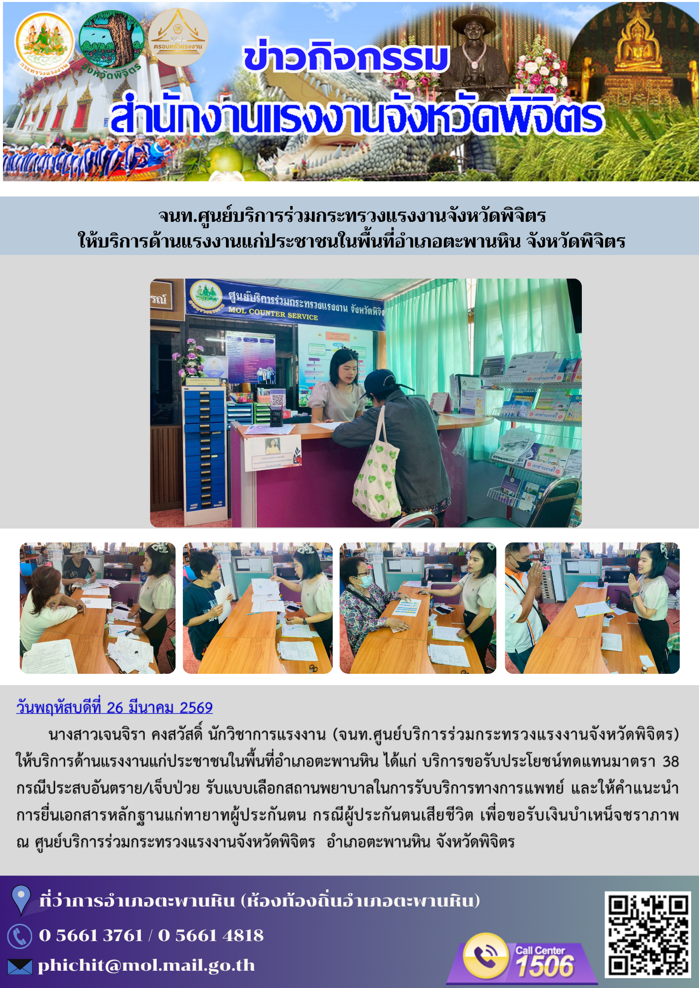 “เจ้าหน้าที่ศูนย์บริการร่วมกระทรวงแรงงานจังหวัดพิจิตร ให้บริการประชาชน”