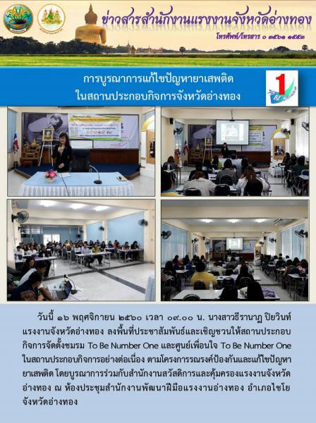 การบูรณาการแก้ไขปัญหายาเสพติด ในสถานประกอบกิจการจังหวัดอ่างทอง