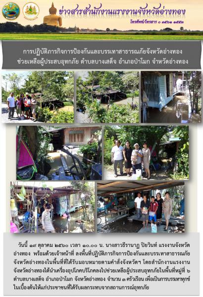 การปฏิบัติภารกิจการป้องกันและบรรเทาสาธารณภัยจังหวัดอ่างทอง ช่วยเหลือผู้ประสบอุทกภัย ตำบลบางเสด็จ อำเภอป่าโมก จำหวัดอ่างทอง