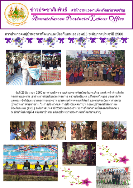 การประกวดและการประเมินผลการประกวดหมู่บ้านอาสาพัฒนาและป้องกันตนเอง (อพป.) ระดับภาคประจำปี 2560 จังหวัดอำนาจเจริญ