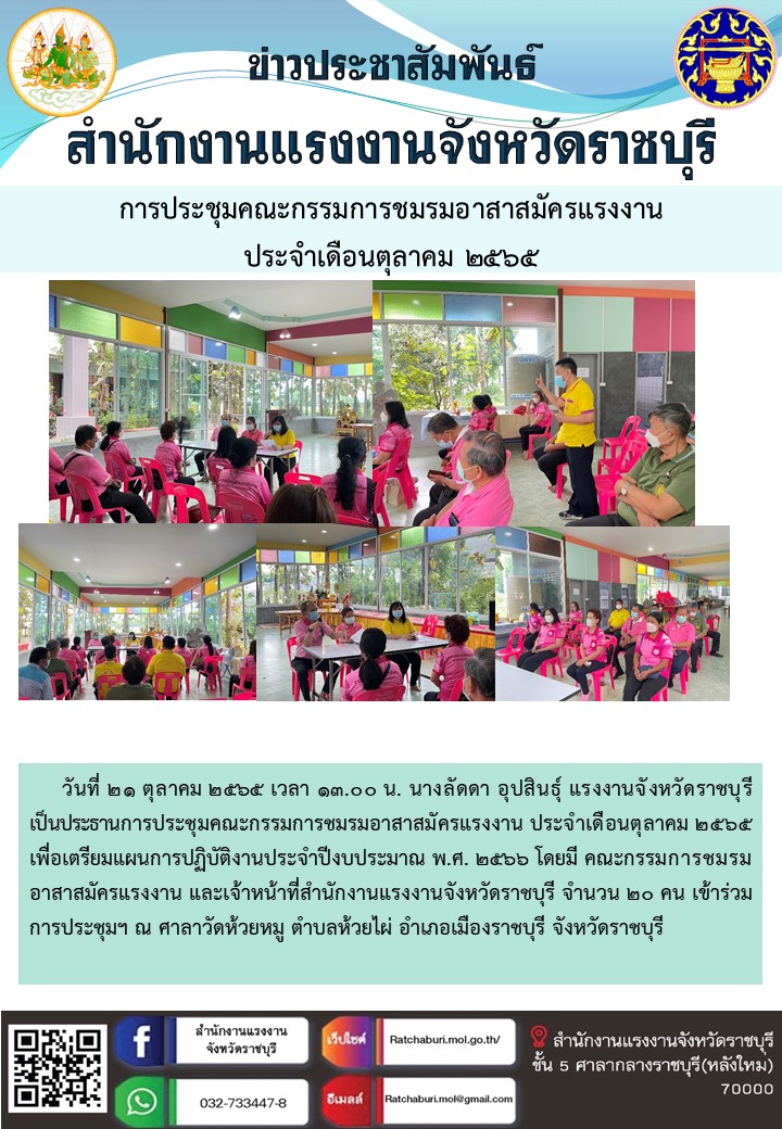 การประชุมคณะกรรมการชมรมอาสาสมัครแรงงาน ประจำเดือนตุลาคม 2565