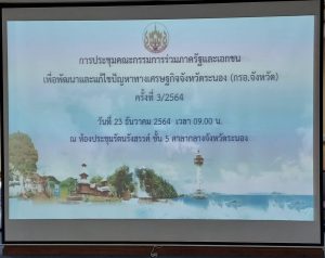 การประชุมคณะกรรมการภาครัฐและเอกชนเพื่อพัฒนาและแก้ไขปัญหาทางเศรษฐกิจจังหวัดระนอง (กรอ.จังหวัด) ครั้งที่ 3/2564