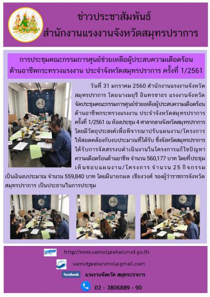 การประชุมคณะกรรมการศูนย์ช่วยเหลือผู้ประสบความเดือดร้อนด้านอาชีพกระทรวงแรงงาน ประจำจังหวัดสมุทรปราการ ครั้งที่ 1/2561