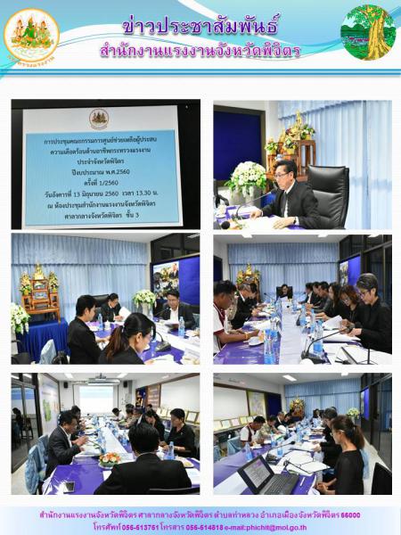 วันที่ 13 มิถุนายน 2560 เวลา 13.30 น. นายวีระศักดิ์ วิจิตร์แสงศรี ผู้ว่าราชการจังหวัดพิจิตร มอบหมายให้ นายปิยะ วงศ์ลือชา รองผู้ว่าราชการจังหวัด เป็นประธานการประชุมคณะกรรมการศูนย์ช่วยเหลือผู้ประสบความเดือดร้อนด้านอาชีพกระทรวงแรงงาน ประจำปี พ.ศ.2560 รอบที่ 2 ครั้งที่ 1/2560 ณ ห้องประชุมสำนักงานแรงงานจังหวัดพิจิตร เพื่อพิจารณาให้ความเห็นชอบแผนงาน/โครงการแก้ไขปัญหาความเดือดร้อนด้านอาชีพ