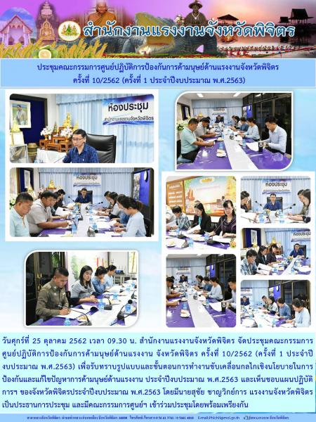 การประชุมคณะกรรมการศูนย์ปฏิบัติการป้องกันการค้ามนุษย์ด้านแรงงานจังหวัดพิจิตร ครั้งที่ 10/2562 (ครั้งที่ 1 ประจำปีงบประมาณ พ.ศ.2563)