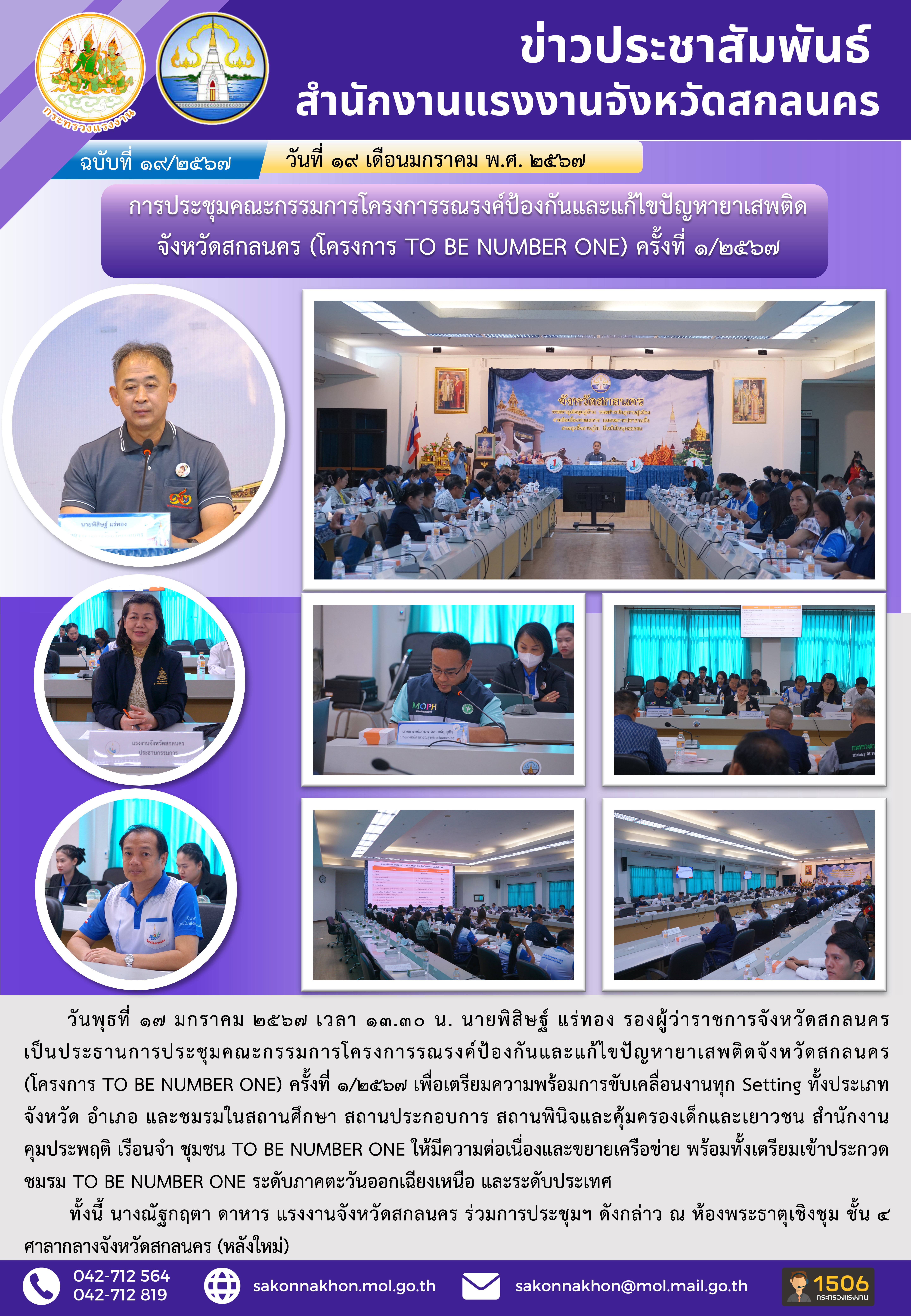สรจ.สกลนคร เข้าการประชุมคณะกรรมการโครงการรณรงค์ป้องกันและแก้ไขปัญหายาเสพติดจังหวัดสกลนคร (โครงการ TO BE NUMBER ONE) ครั้งที่ 1/2567