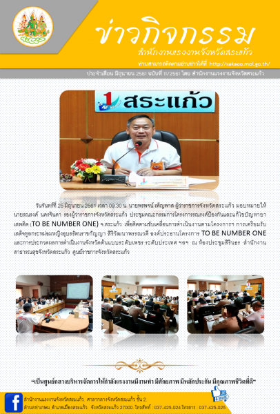 การประชุมคณะกรรมการโครงการรณรงค์ป้องกันและแก้ไขปัญหายาเสพติด (TO BE NUMBER ONE) จ.สระแก้ว