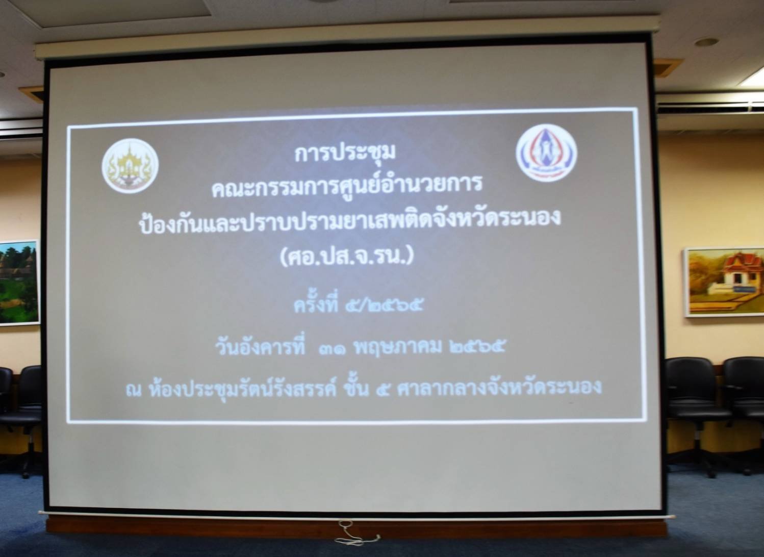 การประชุมคณะกรรมการศูนย์อำนวยการป้องกันและปราบปรามยาเสพติดจังหวัดระนอง ครั้งที่ 5/2565