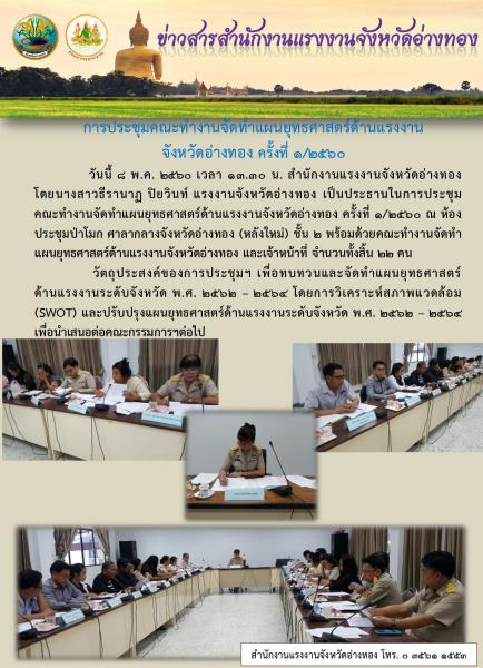 การประชุมคณะทำงานจัดทำแผนยุทธศาสตร์ด้านแรงงาน จังหวัดอ่างทอง ครั้งที่ 1/2560