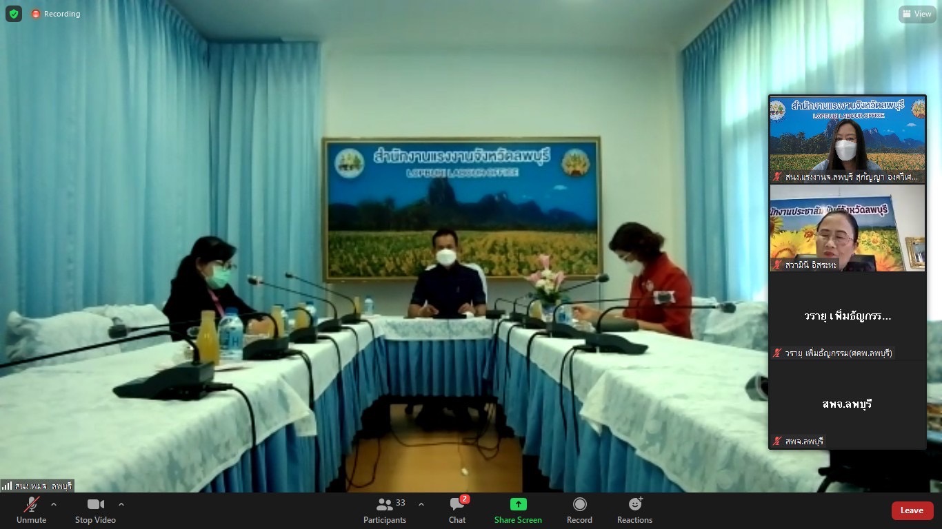 วันที่ 11 มีนาคม 2565 เวลา 10.00 น. นายสุภกิณห์ แวงชิน รองผู้ว่าราชการจังหวัดลพบุรี เป็นประธานการประชุมคณะอนุกรรมการขับเคลื่อนศูนย์ส่งเสริมความรับผิดชอบต่อสังคมของภาคธุรกิจ จังหวัดลพบุรี (CSR) ครั้งที่ 1/2565 ณ ห้องประชุมสำนักงานแรงงานจังหวัดลพบุรี ศาลากลางจังหวัดลพบุรี ชั้น 1 ตำบลทะเลชุบศร อำเภอเมืองลพบุรี จังหวัดลพบุรี โดยนางสาวสุกัญญา องค์วิเศษไพบูลย์ แรงงานจังหวัดลพบุรี เข้าร่วมประชุมฯ ผ่านระบบ Zoom Meeting
