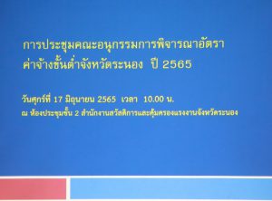 การประชุมคณะอนุกรรมการพิจารณาอัตราค่าจ้างขั้นต่ำจังหวัดระนอง ประจำปีงบประมาณ พ.ศ.2565