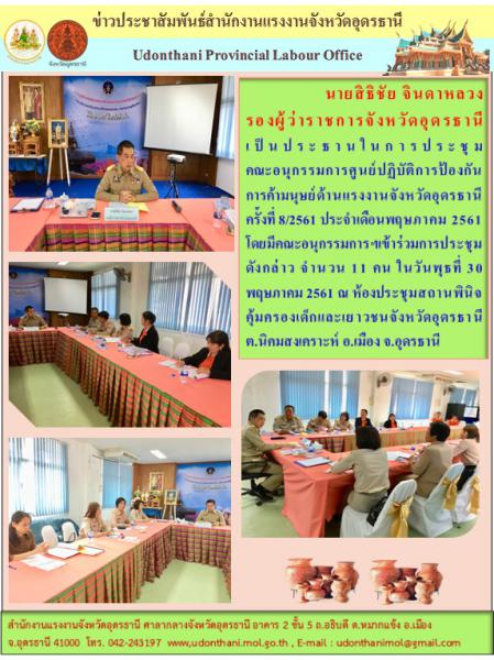 การประชุมคณะอนุกรรมการศูนย์ปฏิบัติการป้องกันการค้ามนุษย์ด้านแรงงานจังหวัดอุดรธานี ครั้งที่ 8/2561 ประจำเดือนพฤษภาคม 2561