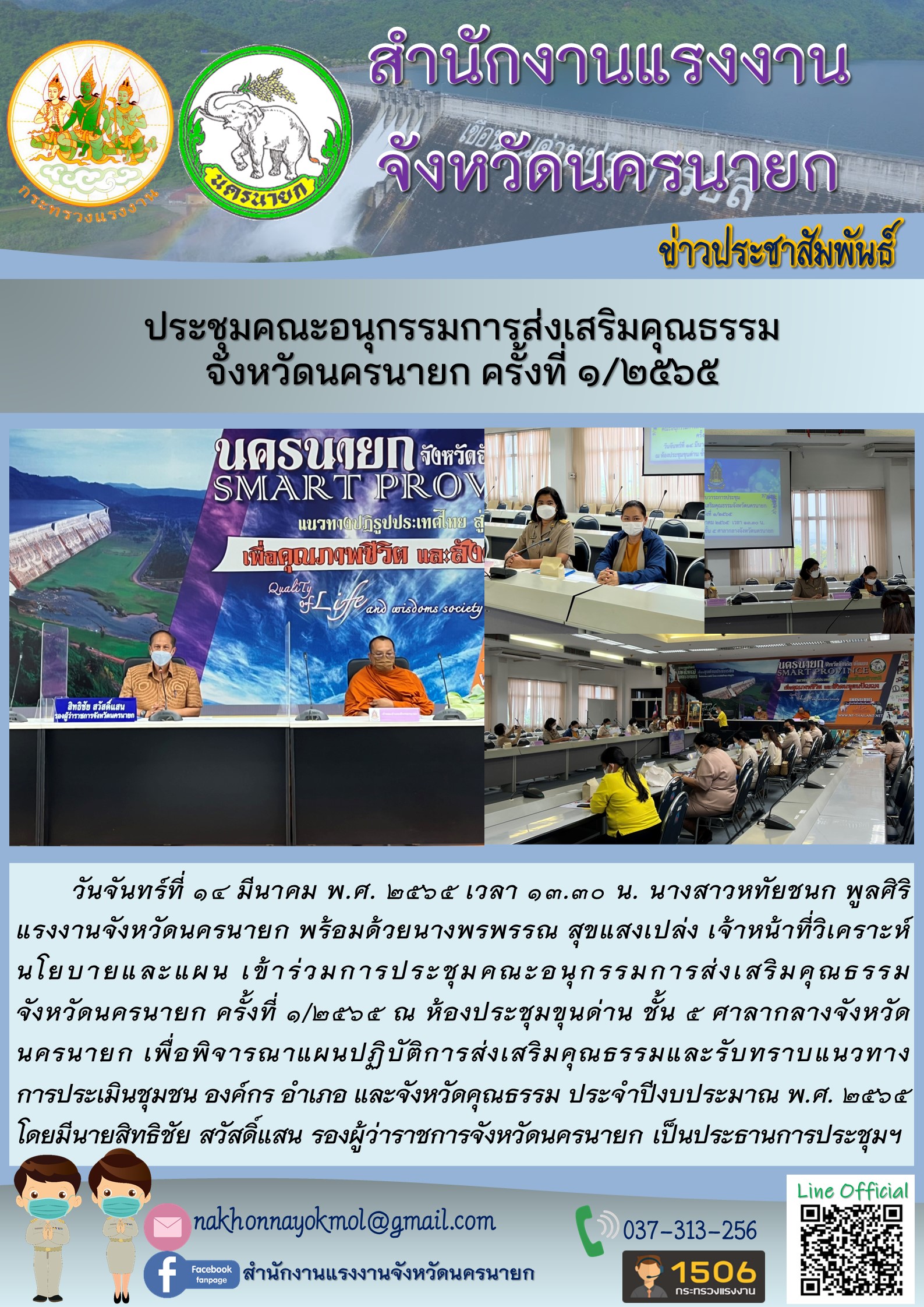 การประชุมคณะอนุกรรมการส่งเสริมคุณธรรม จังหวัดนครนายก ครั้งที่ 1/2565
