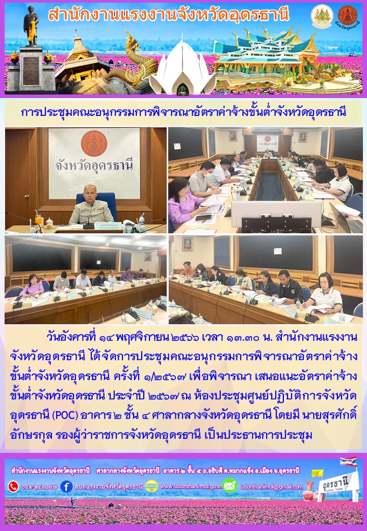 สรจ.อุดรธานี ประชุมคณะอนุกรรมการพิจารณาอัตราค่าจ้างขั้นต่ำจังหวัดอุดรธานี