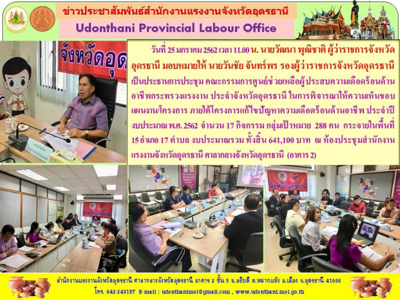 การประชุมคณะอนุกรรมศูนย์ช่วยเหลือผู้ประสบความเดือดร้อนด้านอาชีพกระทรวงแรงงาน ประจำจังหวัดอุดรธานี ประจำปีงบประมาณ พ.ศ.2562