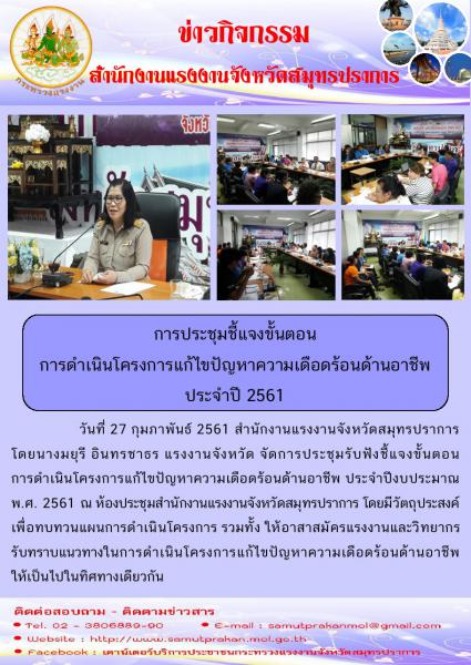 การประชุมชี้แจงขั้นตอนการดำเนินโครงการแก้ไขปัญหาความเดือดร้อนด้านอาชีพ ประจำปี 2561 จังหวัดสมุทรปราการ