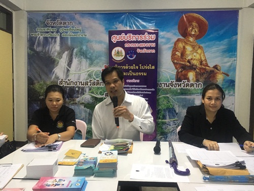 เมื่อวันที่ 7 มิถุนายน 2560 เวลา 08.30 น. นางมาลัยอร หิรัณยรัชต์ แรงงานจังหวัดตากและเจ้าหน้าที่สังกัดกระทรวงแรงงาน ประชุมทบทวนแผนงานและติดตามผลการดำเนินงานอาสาสมัครแรงงานจังหวัดตากและประชุมอาสาสมัครแรงงานจังหวัดตากเพื่อขับเคลื่อนและติดตามผลการดำเนินงานส่งเสริมแรงงานนอกระบบ ณ ศูนย์บริการร่วมกระทรวงแรงงานจังหวัดตาก อำเภอแม่สอด จังหวัดตาก