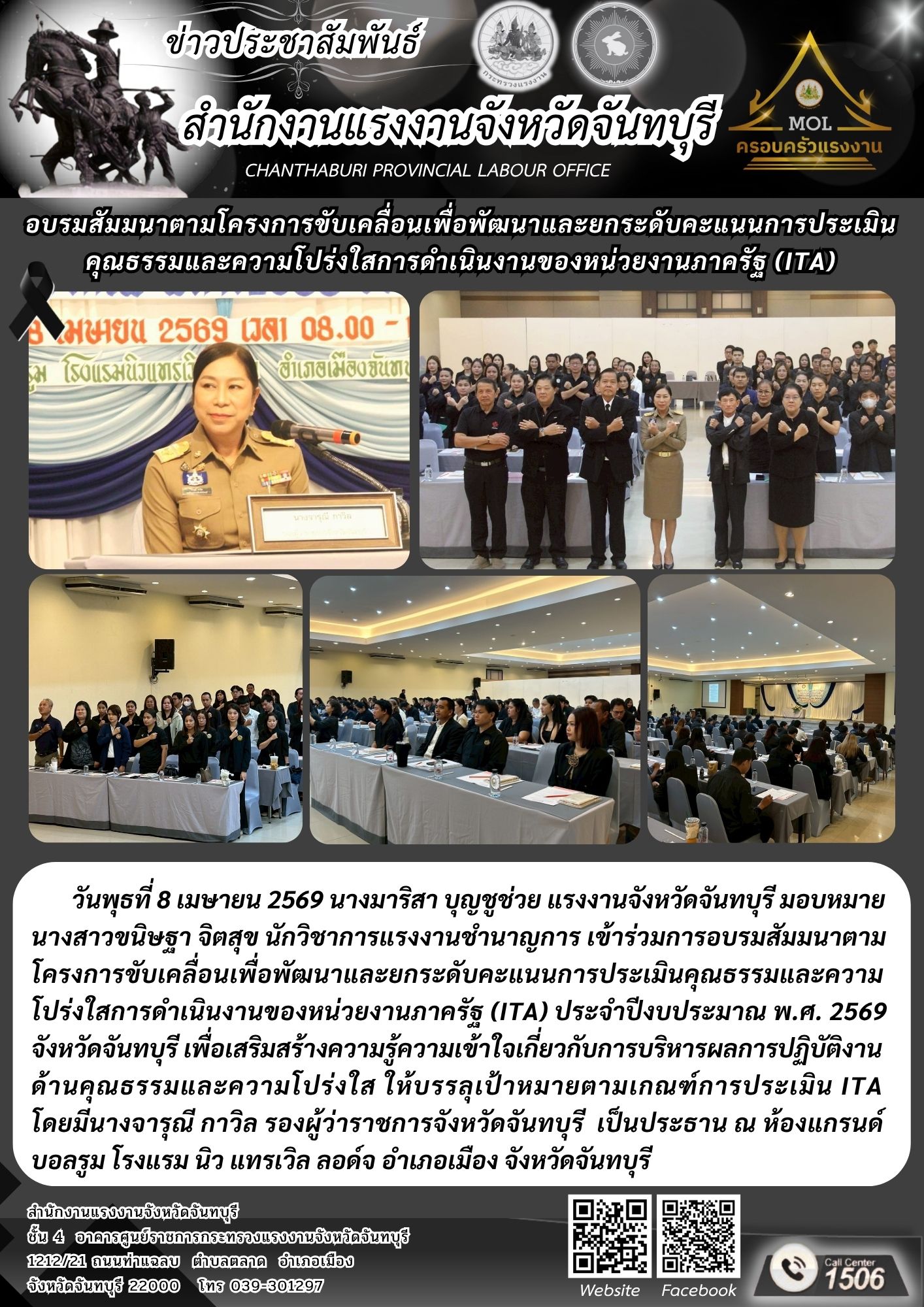 สรจ.จันทบุรี ร่วมการอบรมสัมมนาตามโครงการขับเคลื่อนเพื่อพัฒนาและยกระดับคะแนนการประเมินคุณธรรมและความโปร่งใสการดำเนินงานของหน่วยงานภาครัฐ (ITA)