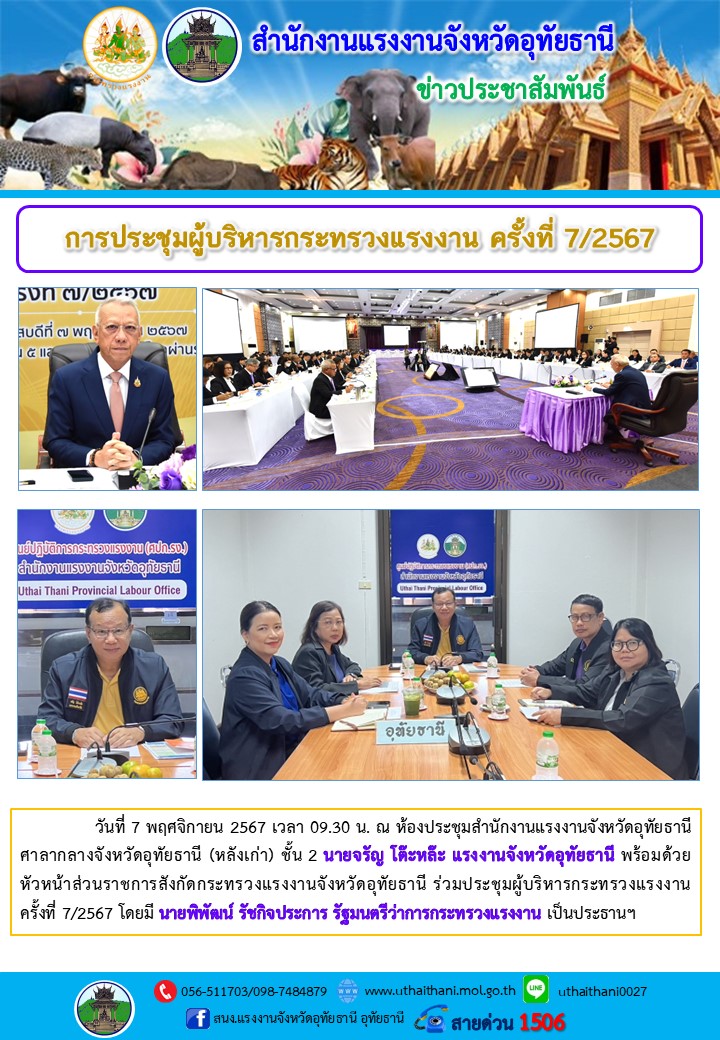 สรจ.อุทัยธานี การประชุมผู้บริหารกระทรวงแรงงาน ครั้งที่ 7/2567