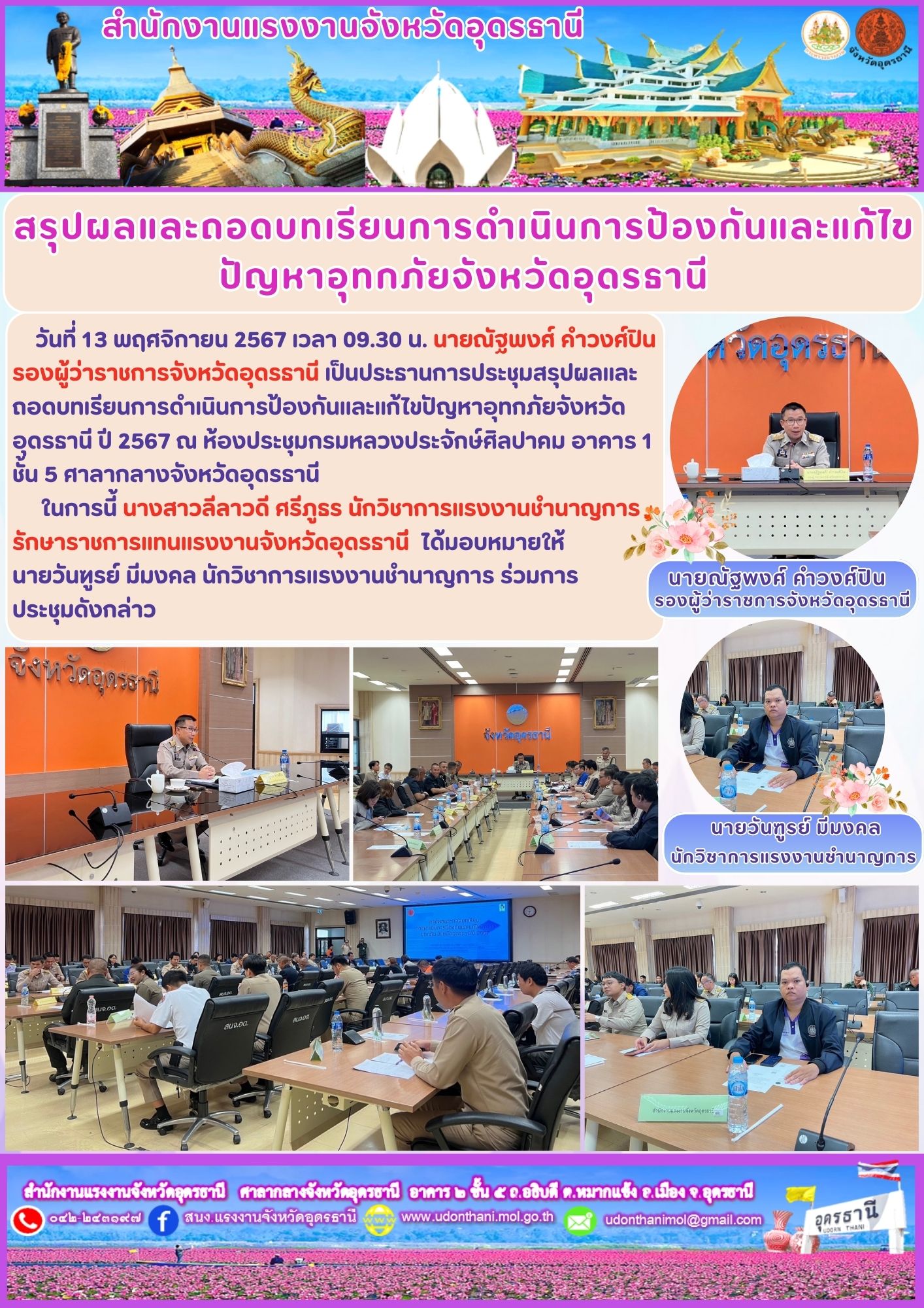 สรจ.อุดรธานี การประชุมสรุปผลและถอดบทเรียนการดำเนินการป้องกันและแก้ไขปัญหาอุทกภัยจังหวัดอุดรธานี