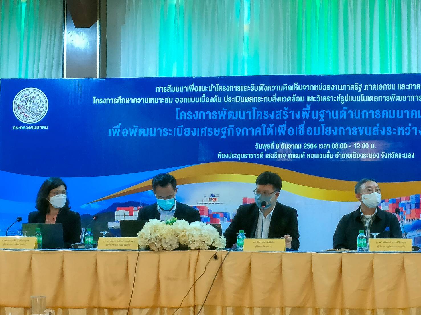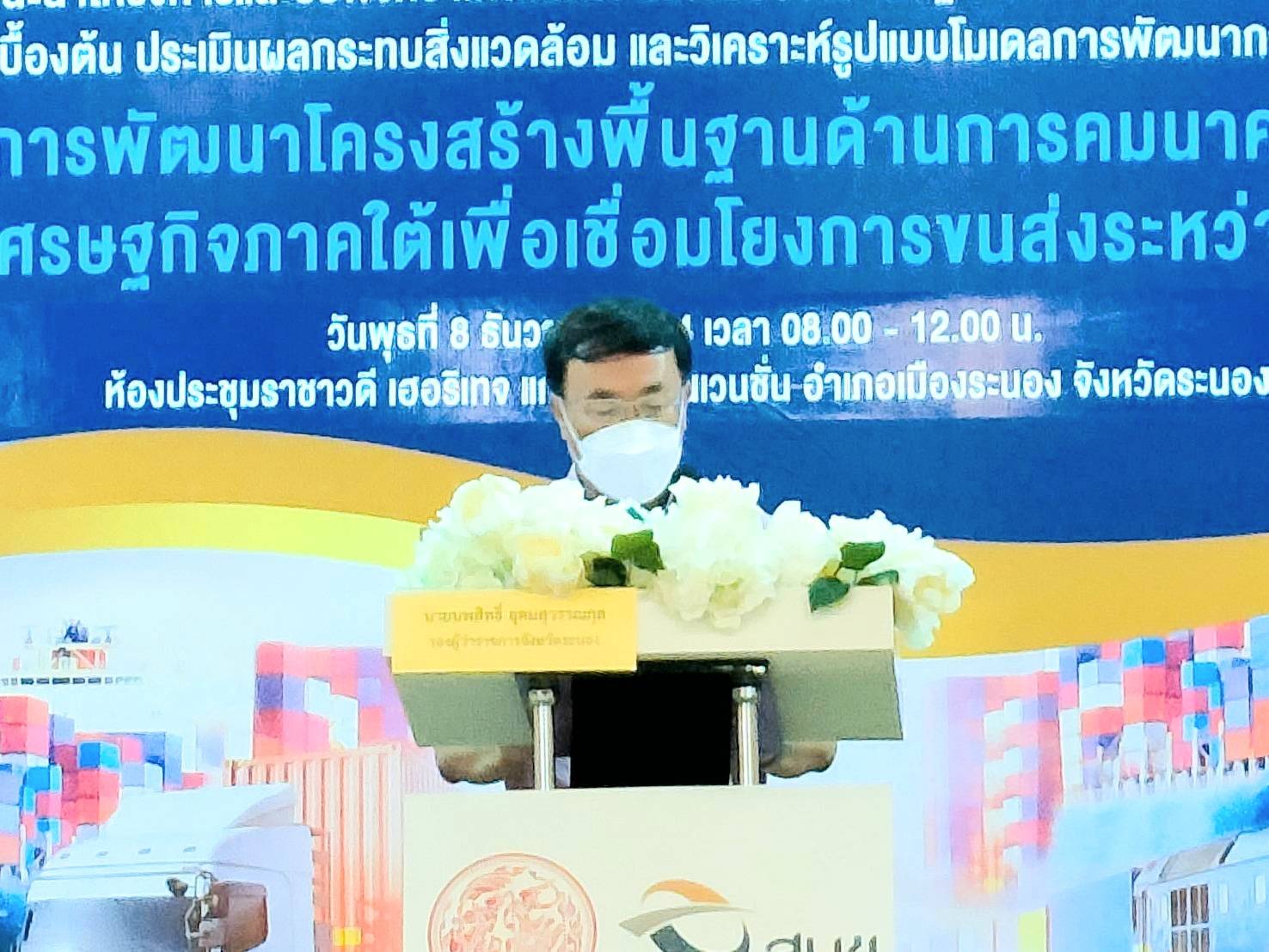 สรจ.ระนอง ร่วมประชุมสัมมนาเพื่อแนะนำโครงการและรับฟังความคิดเห็นฯเพื่อพัฒนาระเบียงเศรษฐกิจภาคใต้เพื่อเชื่อมโยงการขนส่งระหว่างอ่าวไทยและอันดามัน