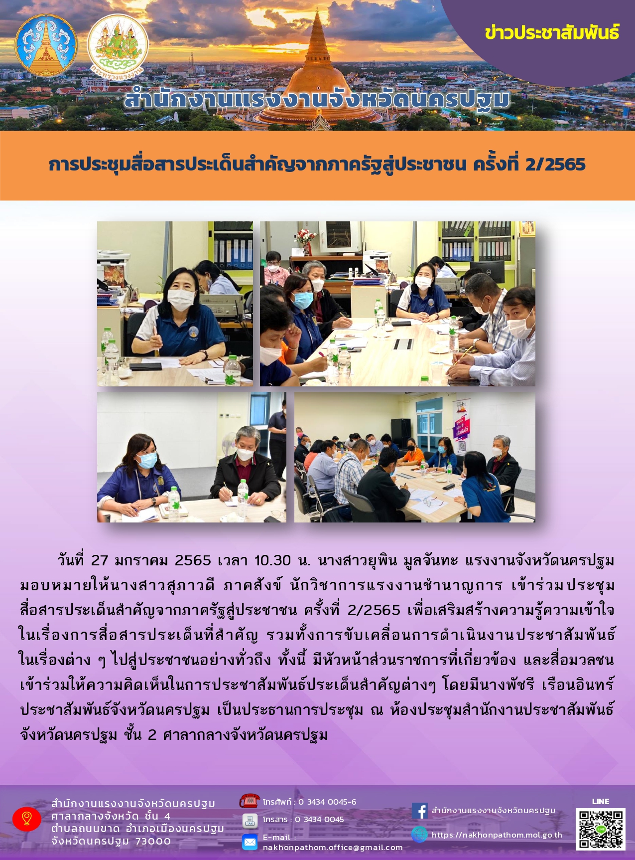 สรจ.นครปฐม ร่วมประชุมสื่อสารประเด็นสำคัญจากภาครัฐสู่ประชาชน ครั้งที่ 2/2565