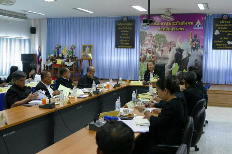 เมื่อวันที่ 28 กุมภาพันธ์ 2560 เวลา 13.30 น. นายสุทธิ สุโกศล ผู้ตรวจราชการกระทรวงแรงงาน พร้อมด้วยผู้ตรวจราชการกรม(ผต.)กรมการจัดหางาน นายศักดิ์สกล จินดาสวัสดิ์ ผต.กรมพัฒนาฝีมือแรงงาน นายประทีป ทรงลำยอง ผต.สวัสดิการและคุ้มครองแรงงาน นายสมศักดอ์ พิรินยวง และผต.สำนักงานประกันสังคม นายสงวน วงศ์สัมพันธ์สุข เขตตรวจราชการที่ 14 ประชุมหัวหน้าส่วนราชการสังกัดกระทรวงแรงงานจังหวัดสุรินทร์เพื่อติดตามความก้าวหน้าผลการปฏิบัติงานตามประเด็นการตรวจราชการของผู้ตรวจราชการประจำปีงบประมาณ พ.ศ.2560 รอบที่ 2 ณ ห้องประชุมสำนักงานประกันสังคมจังหวัดสุรินทร์ อ.เมืองสุรินทร์ จ.สุรินทร์