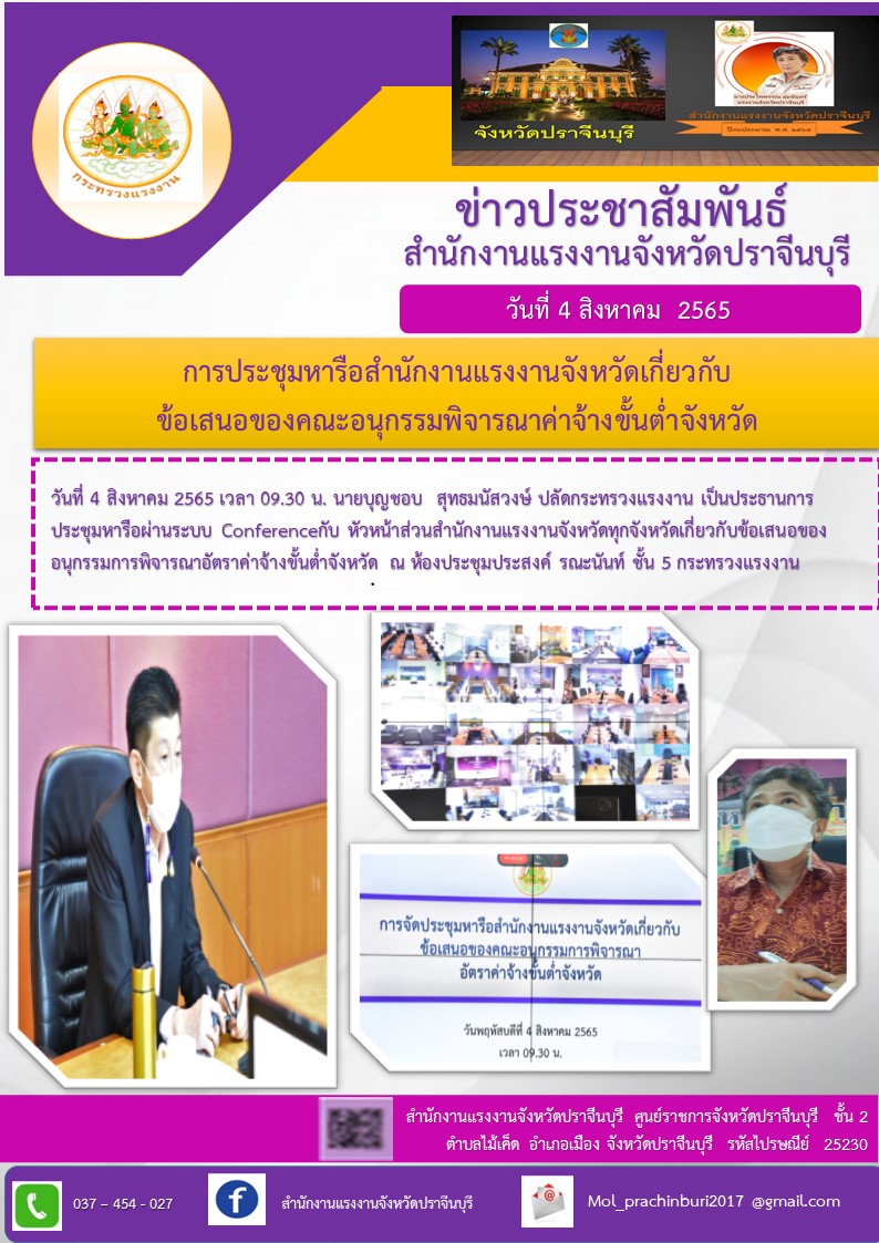 สรจ.ปราจีนบุรี ร่วมประชุมหารือสำนักงานแรงงานจังหวัดเกี่ยวกับข้อเสนอของคณะอนุกรรมการพิจารณาค่าจ้างขั้นต่ำจังหวัด