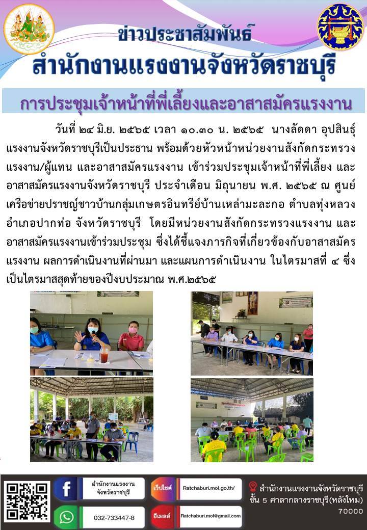 สรจ.ราชบุรี ร่วมประชุมเจ้าหน้าที่พี่เลี้ยงและอาสาสมัครแรงงาน