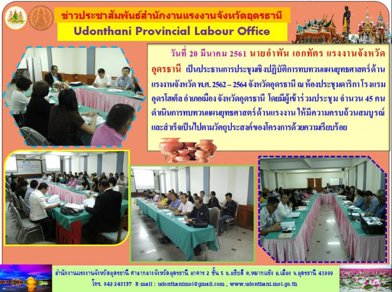 การประชุมเชิงปฏิบัติการทบทวนแผนยุทธศาสตร์ด้านแรงงานจังหวัดอุดรธานี พ.ศ.2562 – 2564 จังหวัดอุดรธานี