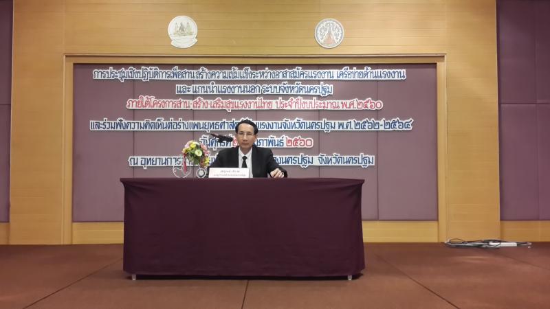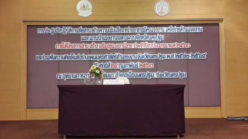สำนักงานแรงงานจังหวัดนครปฐมจัดประชุมเชิงปฏิบัติการเพื่อสานสร้างความเข้มแข็ง ระหว่างอาสาสมัครแรงงาน เครือข่ายด้านแรงงาน และแกนนำแรงงานนอกระบบจังหวัดนครปฐม เมื่อวันศุกร์ที่ 24 กุมภาพันธ์ 2560 ณ อุทยานการอาชีพชัยพัฒนา