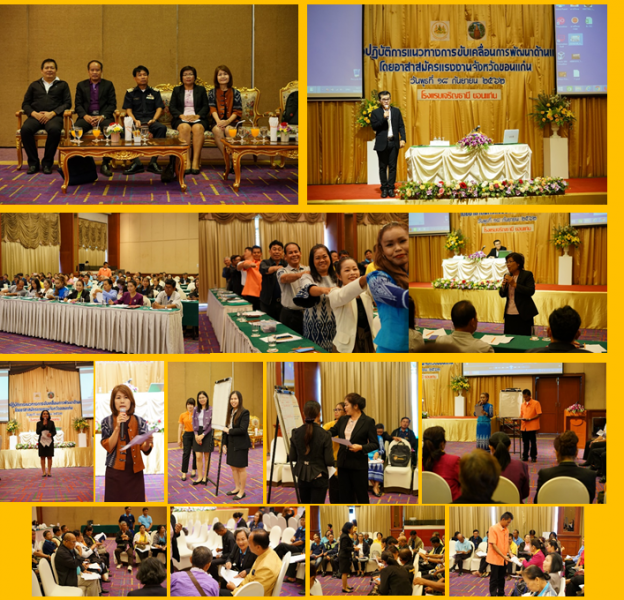 วันที่ 18 กันยายน 2562 สำนักงานแรงงานจังหวัดขอนแก่น ร่วมกับหน่วยงานในสังกัดกระทรวงแรงงานจังหวัดขอนแก่น จัดประชุมเชิงปฏิบัติการแนวทางการขับเคลื่อนการพัฒนาด้านแรงงาน โดยอาสาสมัครแรงงานจังหวัดขอนแก่น วัตถุประสงค์เพื่อให้ อาสาสมัครแรงงาน สามารถเขียนแผนงานโครงการ เพื่อขอรับการสนับสนุนงบประมาณจากหน่วยงานภาครัฐ และมีความรู้ด้านเทคนิคในการประสานงาน และการพูดในชุมชนผู้เข้าประชุม จำนวน 160 คน ณ โรงแรมเจริญธานี จังหวัดขอนแก่น