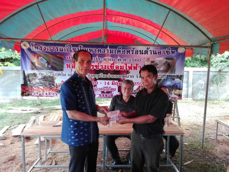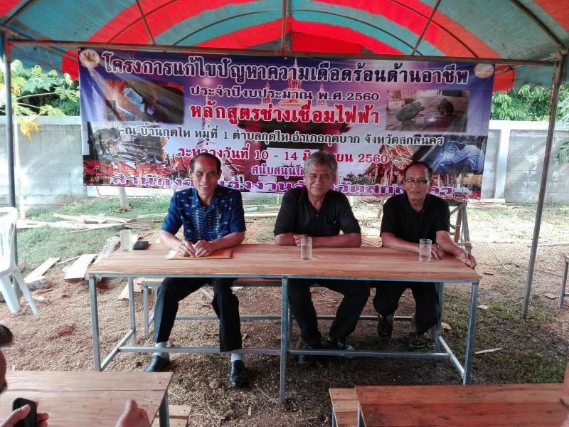 เมื่อวันพฤหัสบดีที่ 15 มิ.ย.60 เวลา 15.00 น. แรงงานจังหวัดสกลนคร (นายบุญเรือง เข็มทอง) เดินทางไปปิดโครงการแก้ไขปัญหาความเดือดร้อนด้านอาชีพ ประจำปีงบประมาณ พ.ศ.2560 หลักสูตรช่างเชื่อมไฟฟ้า ณ บ้านกุดไห ต.กุดไห อ.กุดบาก จ.สกลนคร
