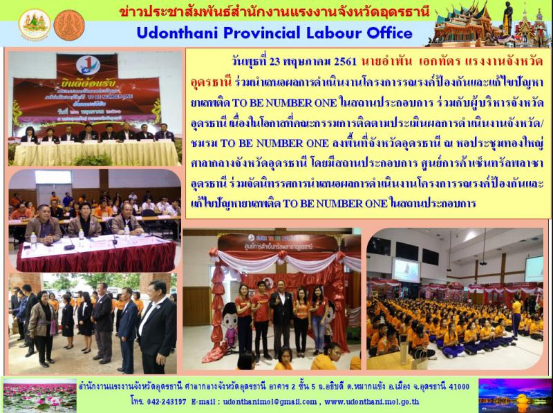 การร่วมนำเสนอผลการดำเนินงานโครงการรณรงค์ป้องกันและแก้ไขปัญหายาเสพติด TO BE NUMBER ONE ในสถานประกอบการร่วมกับผู้บริหารจังหวัดอุดรธานี