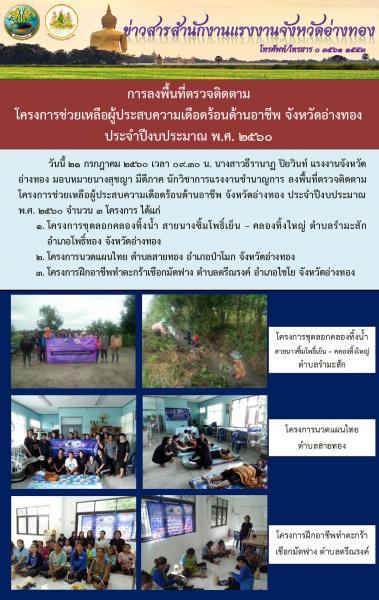 การลงพื้นที่ตรวจติดตาม โครงการช่วยเหลือผู้ประสบความเดือดร้อนด้านอาชีพ จังหวัดอ่างทอง ประจำปีงบประมาณ พ.ศ. 2560