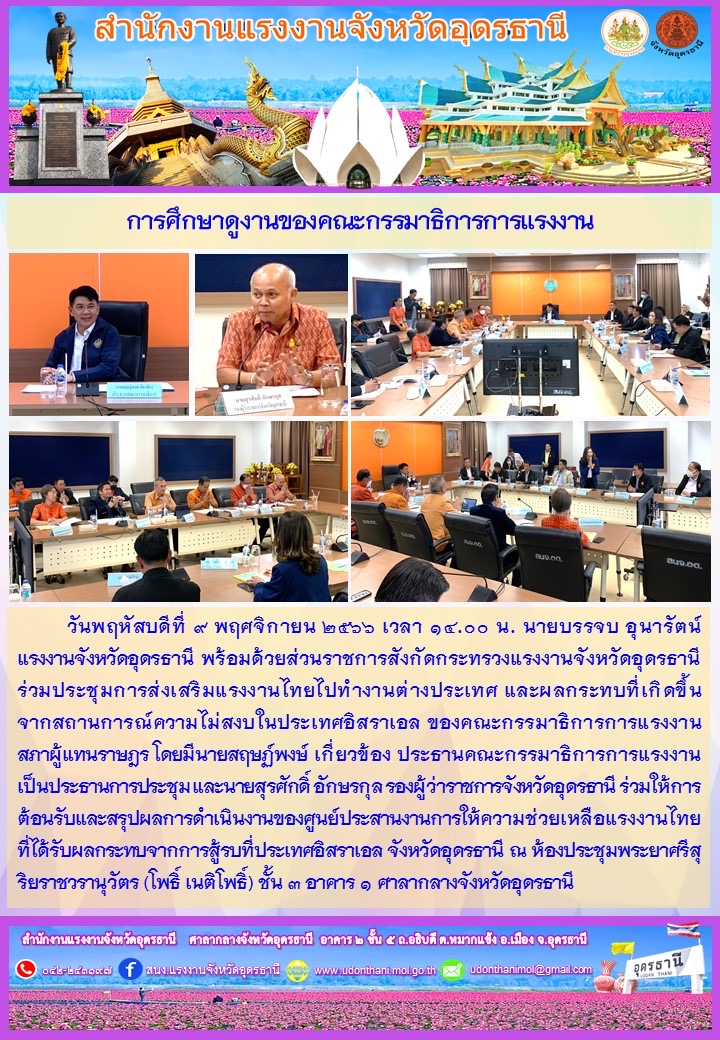 สรจ.อุดรธานี ศึกษาดูงานของคณะกรรมาธิการการแรงงาน